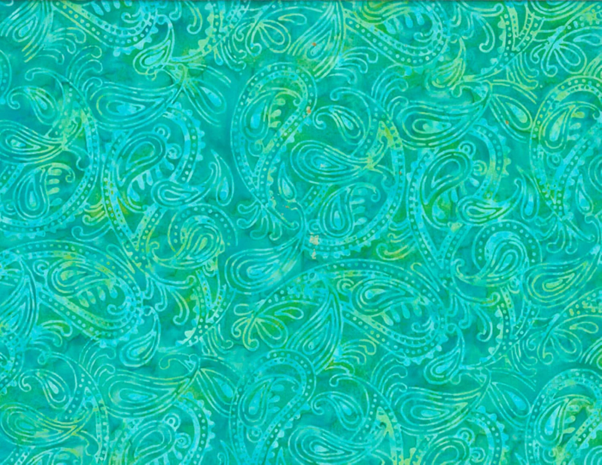 STUNNING paisley blend of aqua blues and greens cotton batik fabric
