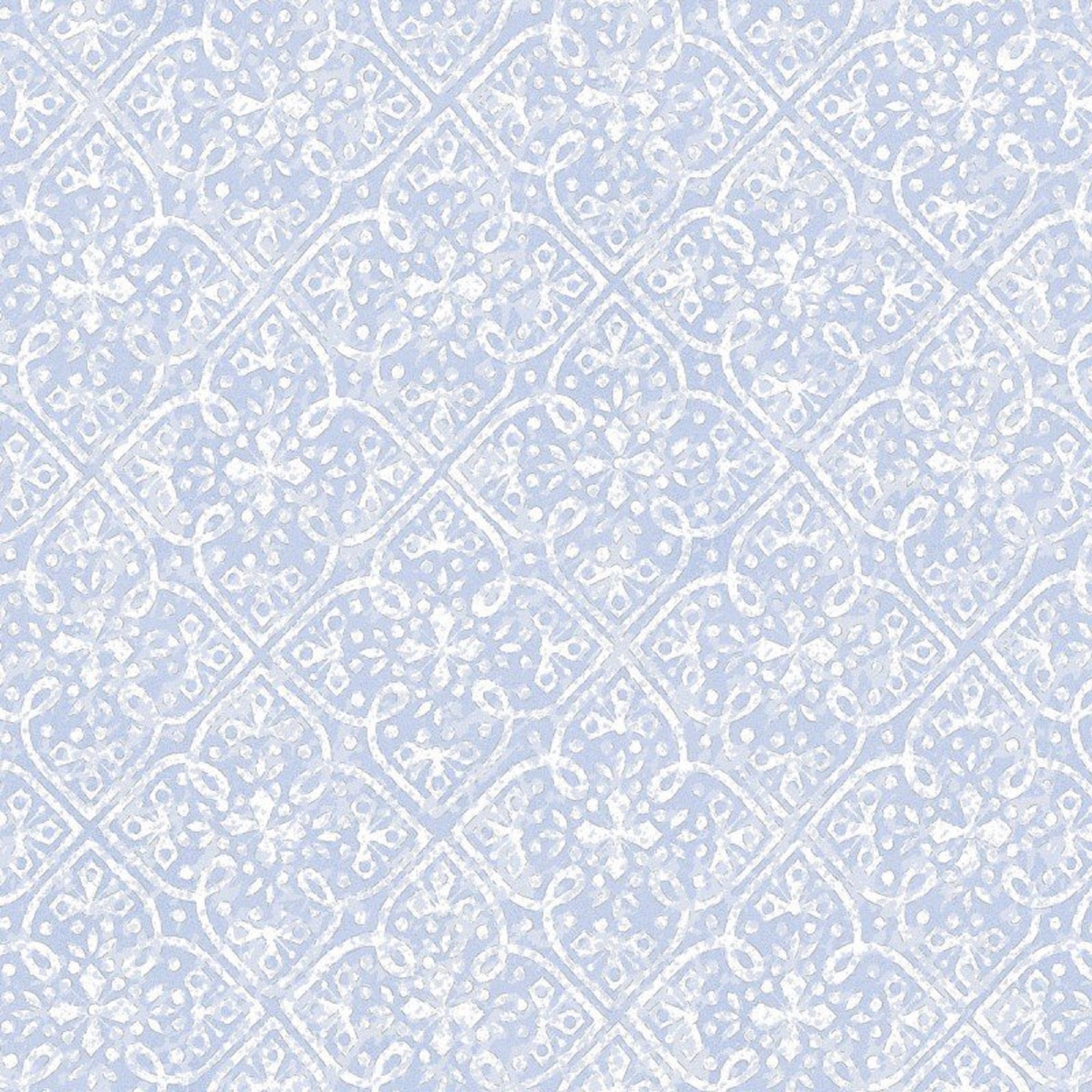Beautiful geometric style blue and white with silver accents is a part of the Silver Jubilee collection made by Maywood Studios