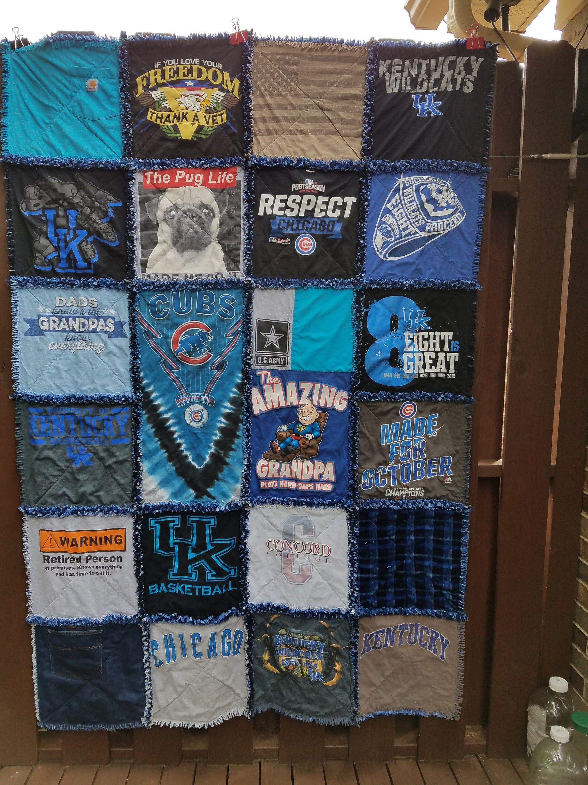 Once tee shirts are received and fabric for middle and back layer is received, allow 4-5 weeks before shipping, depending on the number of orders in process. Many times, I‘m able to complete them in less time. Orders for multiple quilts may take longer.
