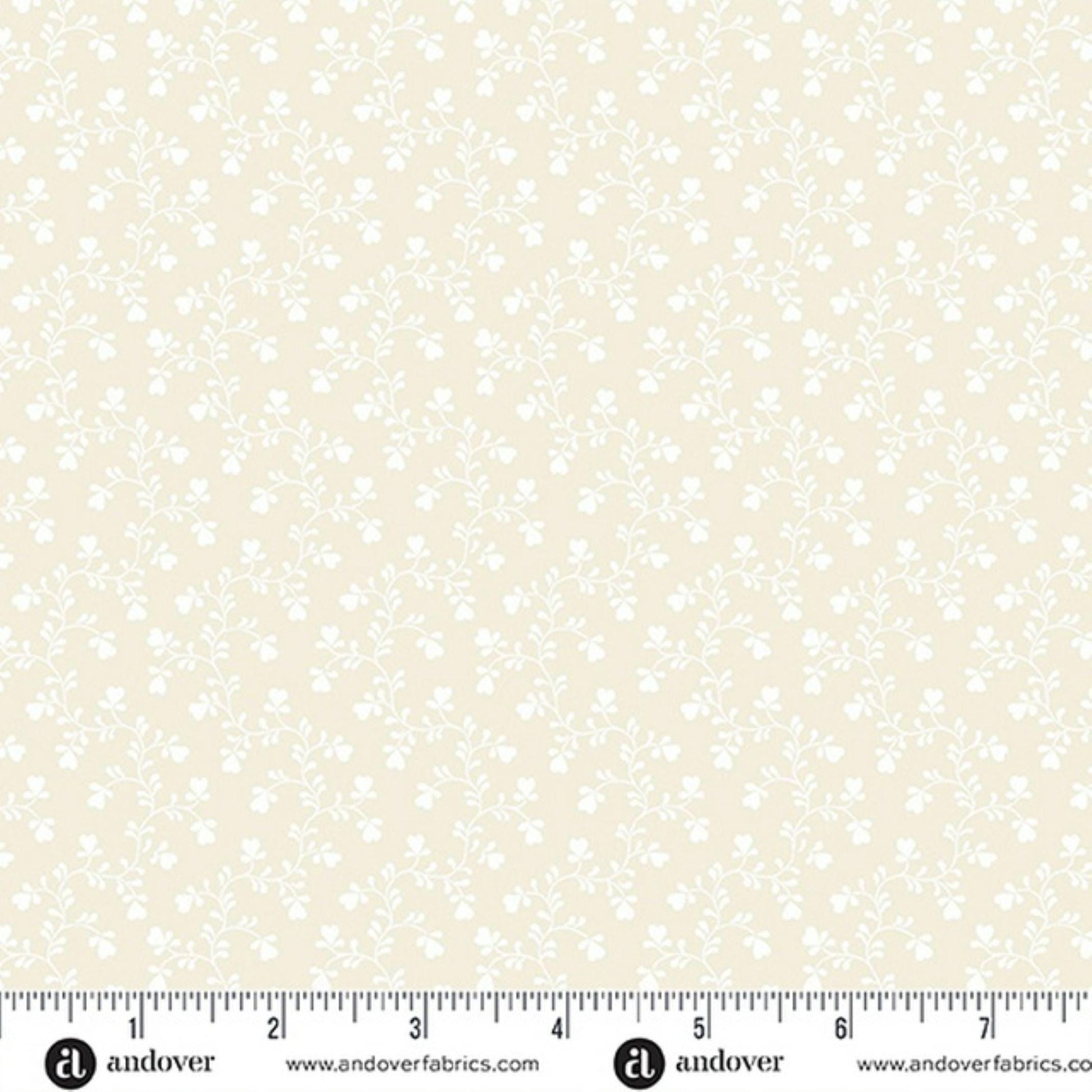 Plain and Simple Tonal White Floral Vine Fabric on Almond by Andover Prints | 100% Cotton