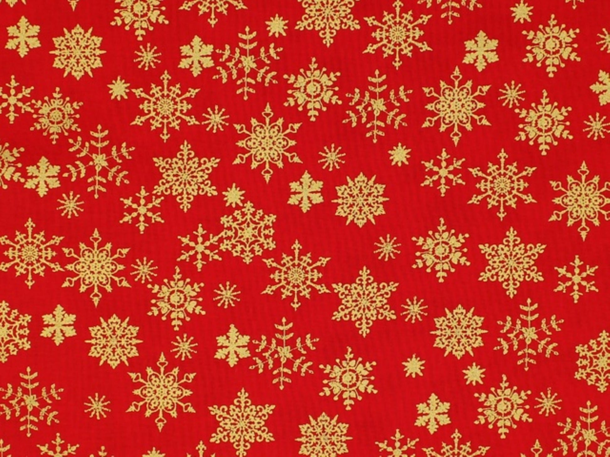 Red Merry Christmas Metallic Gold Snowflake Cotton Quilt Fabric