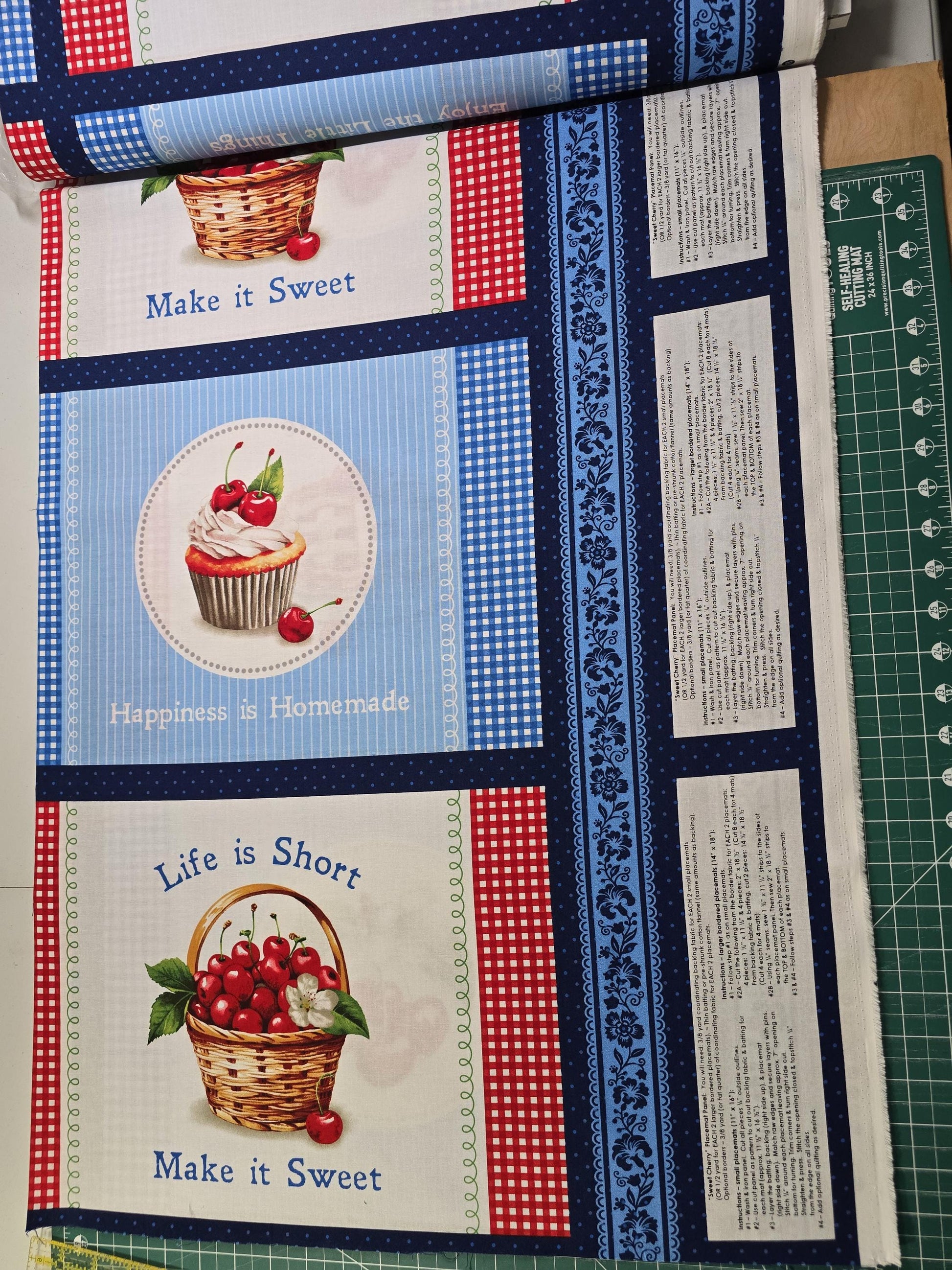 From the Sweet Cherry Collection by Anne Rowan for Wilmington Prints, this delightful fabric features nostalgic cherry treats in charming placemat panels. 1 yard will provide 6 placemat panels.