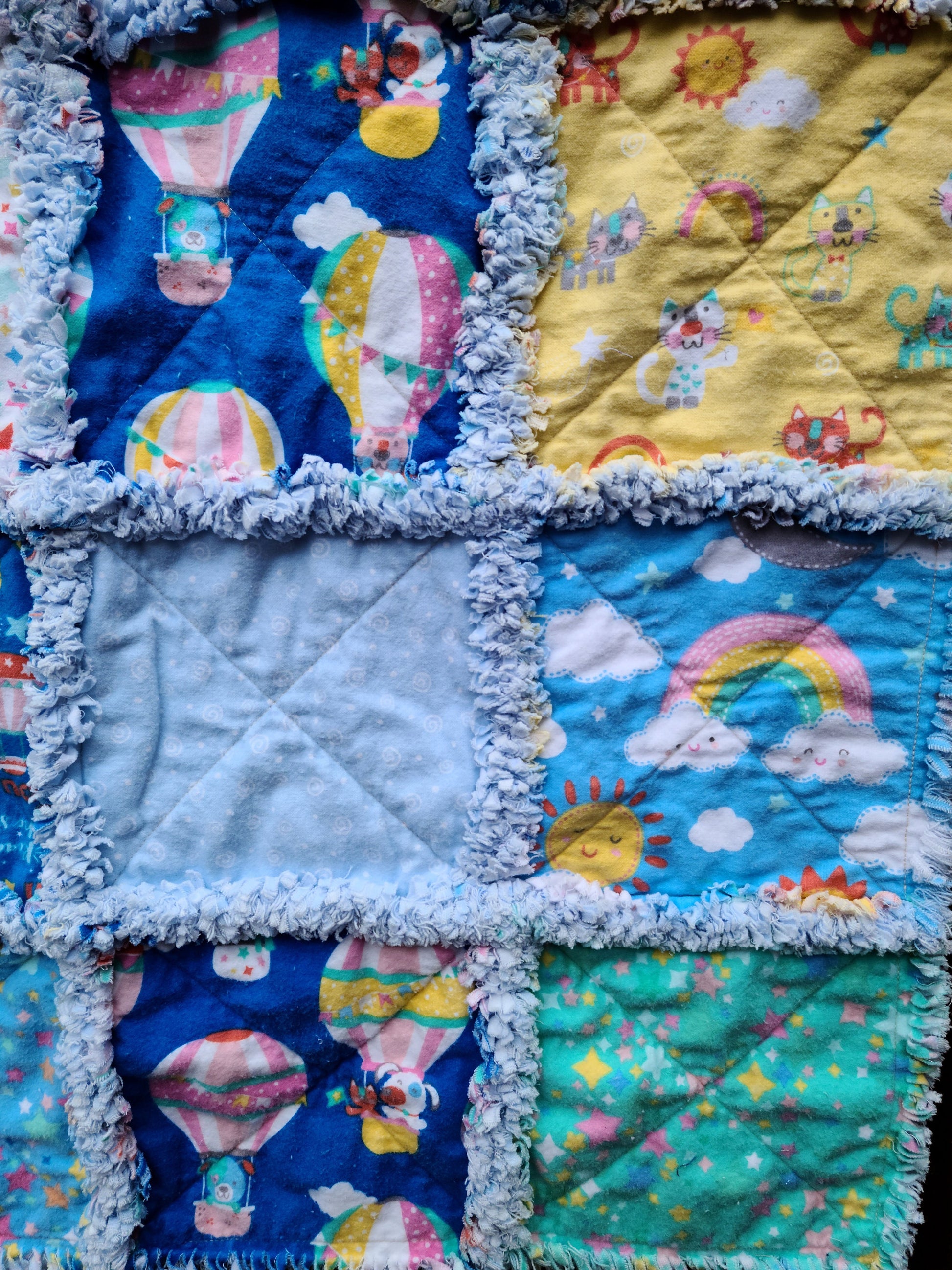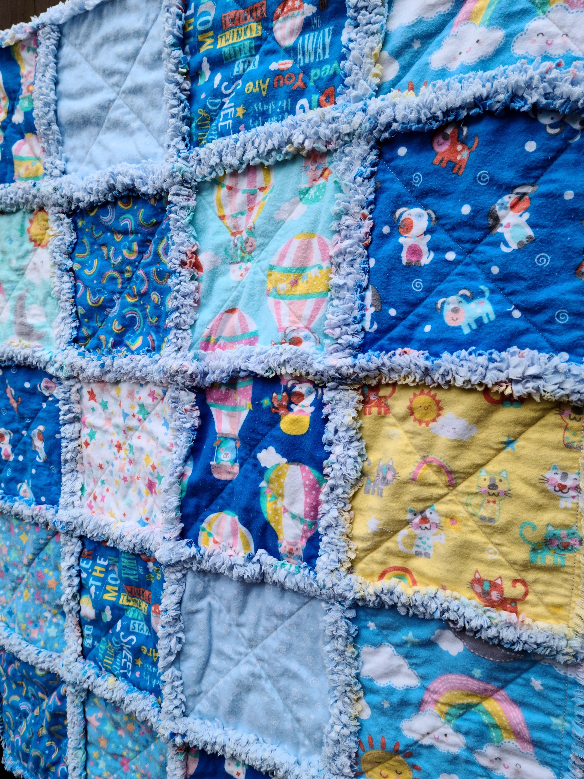 Easy to care for, Machine wash cold water, machine dry normal heat. It has been washed and dried once to start the ragging process.