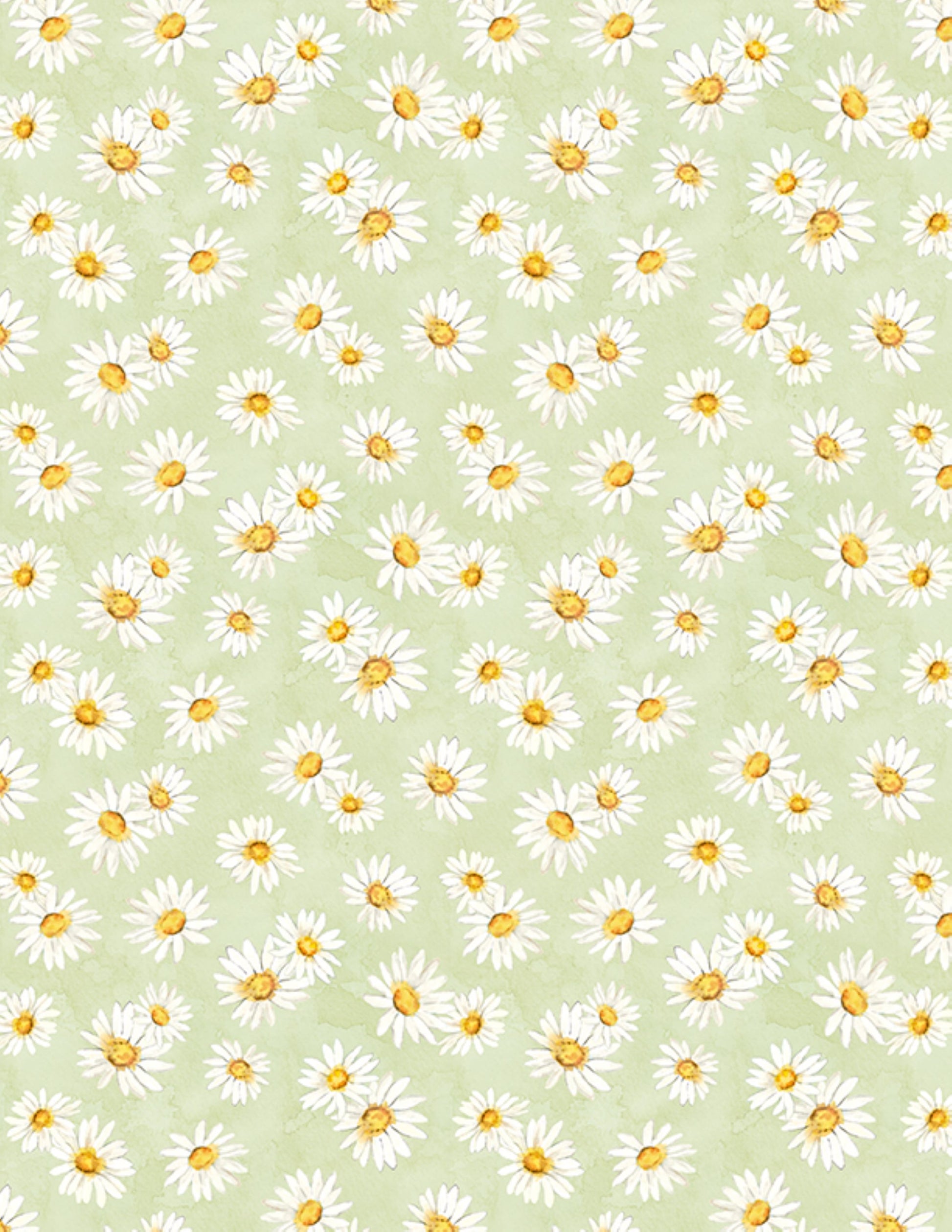From the Zest For Life Collection by Cynthia Coulter for Wilmington Prints. “Zest for Life” watercolor art features bunches of daisies on a light green background